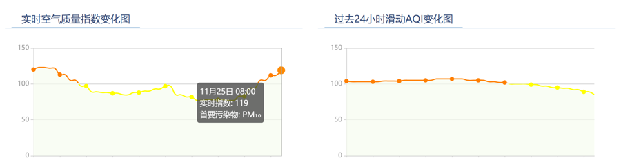 上海实时空气质量指数变化、过去24小时空气质量指数变化。 来源:上海市生态环境局